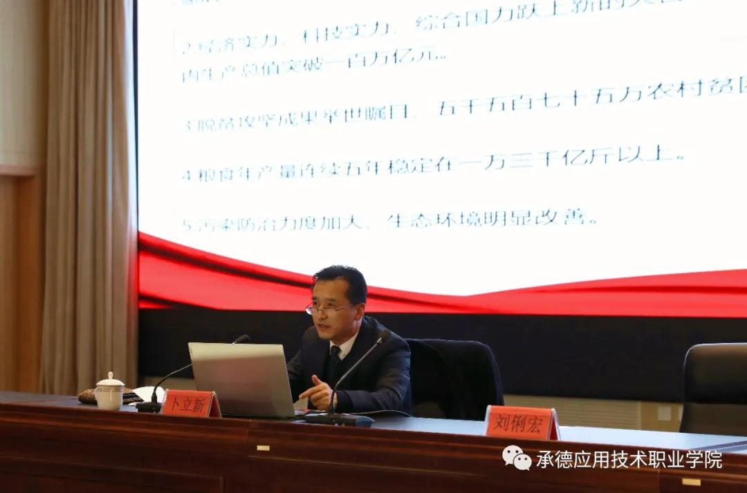 为深入学习贯彻党的十九届五中全会精神,推动全会精神入脑入心,学院成立了党委领导班子宣讲团于近日集中为师生宣讲党的十九届五中全会精神。