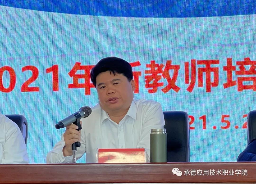王兴华做了动员讲话。他表示,举办新教师入职培训旨在加强教师队伍建设、提升教师能力素质,培养新教师的教育教学理论基础和教学实践能力。他首先介绍了承德的历史文化与发展,并从办学源起、办学理念、师资力量、业绩成就等方面介绍了学院的基本情况,并结合习近平总书记的重要指示,强调了职业教育院校发展的重要性。他对新教师提出三点希望:一是下决心做一名自信的职教人。要树立职教自信,区分好职业教育与本科教育的不同点,深刻理解职业教育的实践性与跨界性,正确认识职业院校教师的重要定位,加快转变角色。二是下决心做一名优秀的人民教师。传道者首先要明道,当一名优秀的高职院校的教师并非易事,职业院校的教师具有师范性、实践性、职业性,既要能讲授理论课程又要精通实训教学。各位新教师要注意角色转换,跳出原来继有的本科或研究生教育思维,进入到崭新的职业教育领域中去,努力将自己培养成为优秀的一名双师型教师。三是下决心做一名合格的好学生。新教师们要高度重视本次培训,先当学生,再当老师,主动学习,不耻下问,虚心学习,精于教学。希望大家在接下来的职业生涯中,永不自满,终身学习,不断提高自己的知识、素养、技能,为成为一名优秀的职业教师而努力。