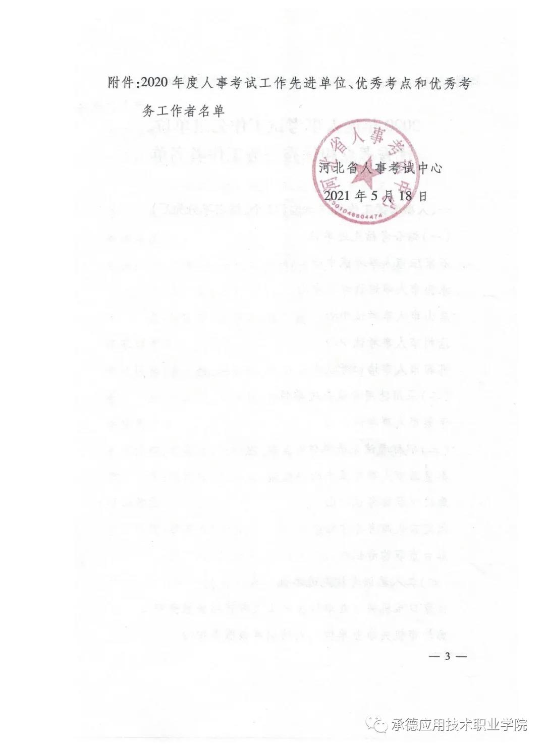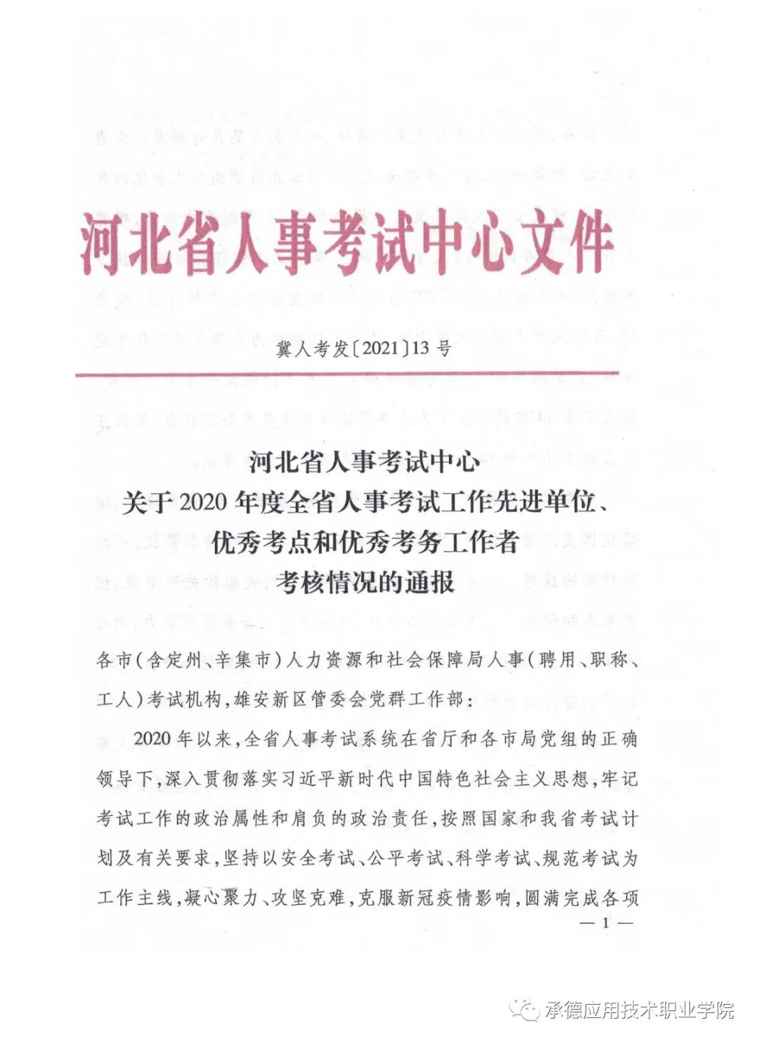 学院获评“2020年度河北省人事考试优秀考点学校”