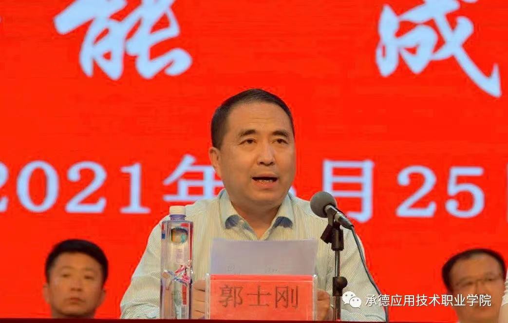 郭士刚在毕业典礼上致辞。他代表市政府向天津中德应用技术大学长期以来对应职院的支持和帮助表示衷心的感谢,向应职院办学取得的初步成果表示热烈的祝贺,向首届毕业生致以最诚挚的祝福。他希望应职院在以后的办学实践中,一是充分做好调研,围绕我市“3+3”主导产业,在人才培养和课程设置方面进一步适应承德发展需要,强化应用性研究,培育应用型人才,服务主导产业发展,努力提高专业与产业的契合度;二是加强校企合作,拓展合作领域,积极服务企业、服务社会,在科技创新、产品打造、市场营销等方面与企业深度对接,助力企业科研攻关、应用技术研究推广,借助企业平台把科研成果转化为生产力,实现科研成果的社会经济功能;三是创新人才就业,紧盯社会所需、企业所需、岗位所需,精准推送毕业生高质量就业,继续为承德、为京津冀培养和输送高素质技术人才。