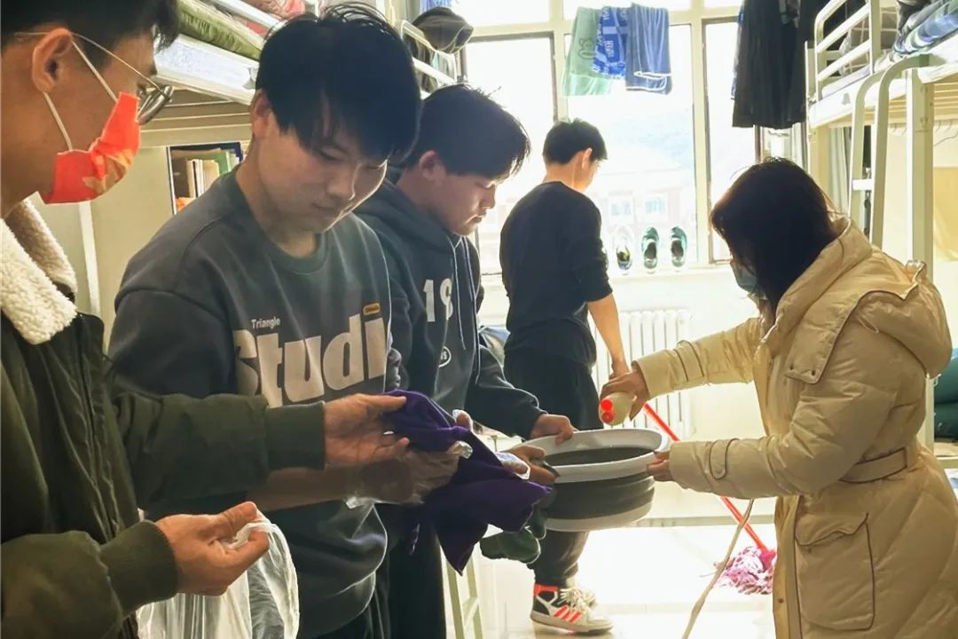 师生携手并肩,共抗疫情。系部全体党员教师保证一周进入到学生宿舍至少一次,指导学生做好通风消毒工作,保证宿舍空气流通。