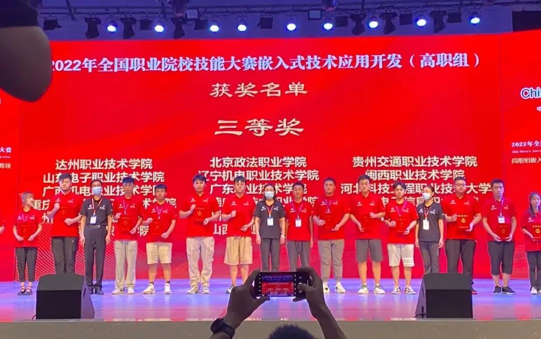 8月30日,2022年全国职业院校技能大赛(高职组)嵌入式技术应用开发比赛在江西九江闭幕。我院参赛学生何绍航、冉学桐、吴星宇在教师田悦妍、杜霖、任光远的指导下喜获三等奖!