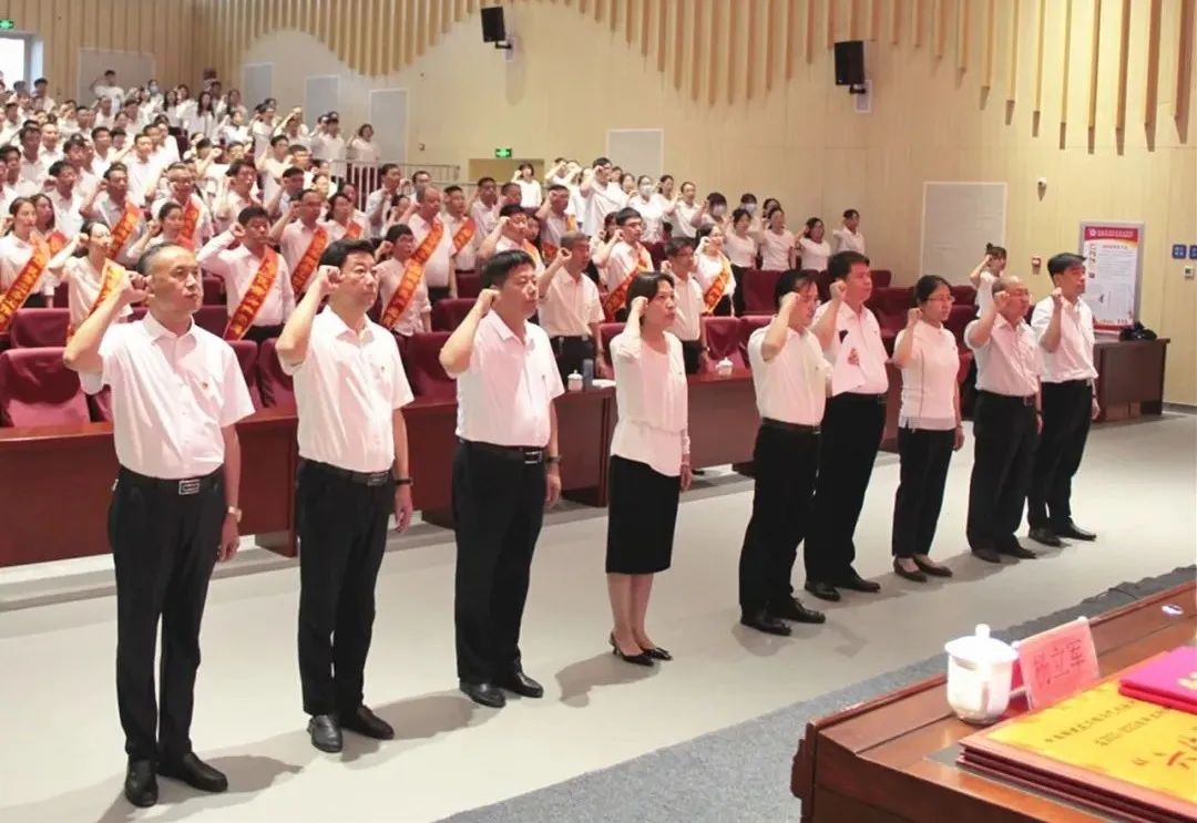 在学院党委书记卜立新领誓下,全体党员举起右手,面向党旗重温入党誓词,铿锵有力的入党誓言,让在场的每一位党员都接受了一次心灵洗礼,党性意识进一步增强。