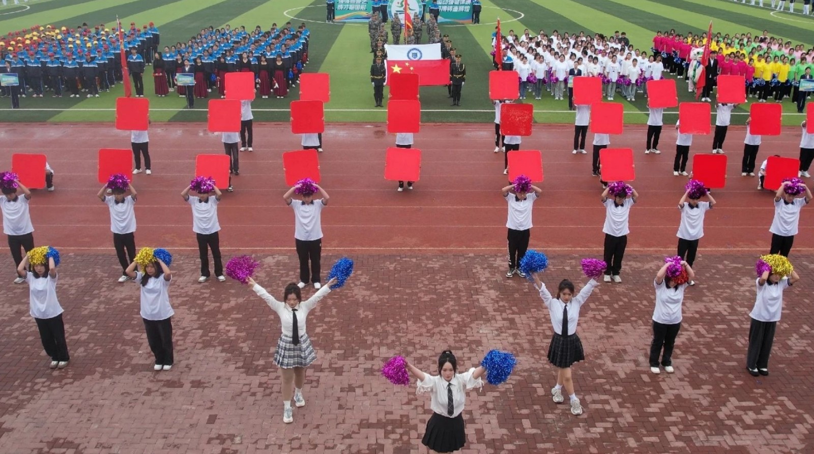开幕式上,伴随着激昂的运动员进行曲,国旗护卫队、各系代表方队、教师代表方队、裁判员代表方队精神饱满,迈着铿锵有力的步伐依次入场,走过主席台接受检阅。商贸管理系和津承艺术设计系学生进行了精彩的团体操表演。