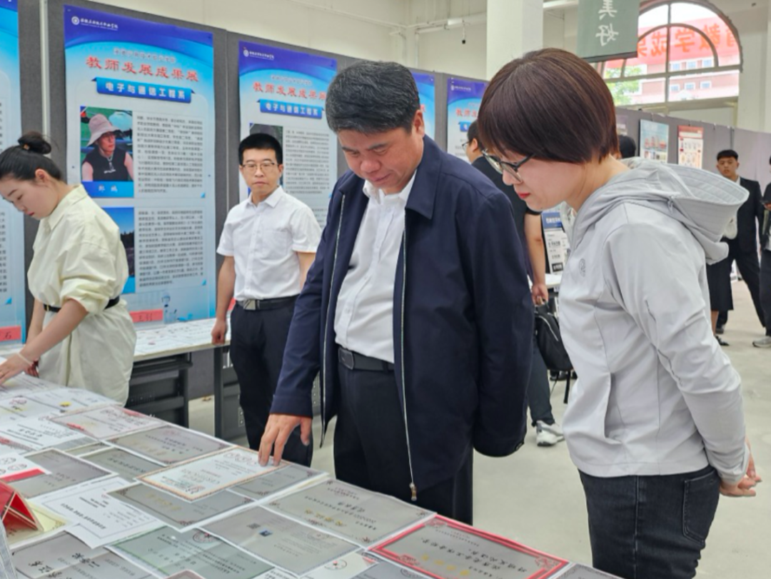 展览现场,各类成果琳琅满目,吸引了Beat365领导和师生的关注。其中,教学类成果展示了教师们在教学改革、课程建设、教学方法创新等方面的积极探索和实践。科研类成果凸显了教师们在专业领域内的深入研究和突出贡献。实践类成果展示了教师们在产教融合、校企合作、技能竞赛等方面的丰硕成果。