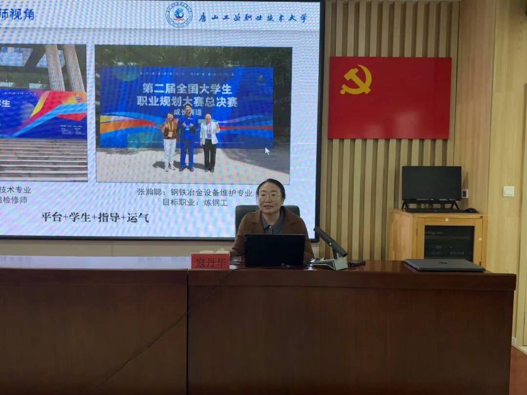 为落实国家高校毕业生就业工作部署,提升教师职业规划大赛指导水平,11月7日下午,学院特邀唐山工业职业技术大学寇丹华老师开展专题讲座,招生就业办公室人员、生涯发展与就业指导教研室全体任课教师、各系部辅导员及大赛指导教师参会80余人。