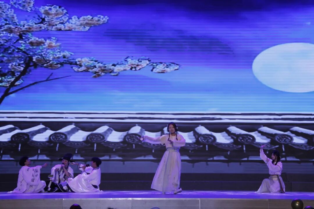闭幕式现场,还进行了精彩的文艺演出。开场舞《Winter》、歌曲《紫荆花盛开》、《阳光路上》、《上春山》、相声《我的爷爷》、配音《追风者》、舞蹈《额尔古纳河》、情景剧《将进酒》等节目精彩上演,为晚会增添了浓厚的艺术氛围。