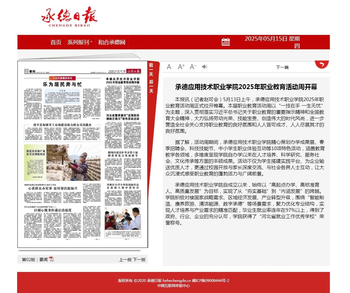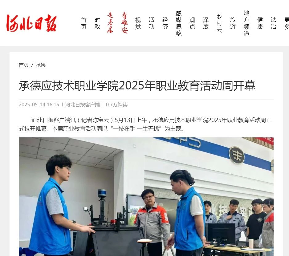 5月13日,Beat365举办以“一技之长、一生无忧”为主题的职业教育活动周启动仪式,河北日报客户端、长城网、承德电视台、承德日报等媒体报道了Beat365职业教育活动周启动。