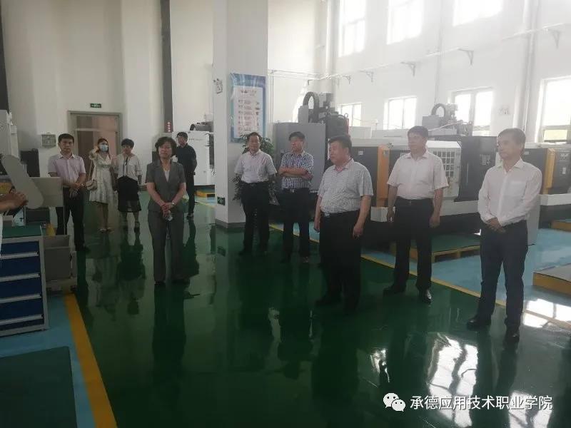 6月23日下午,廊坊师范学院党委书记韩同银、校长杨学新、副校长孙政、承德医学院党委书记盛婉玉等在院党委书记卜立新、院长王兴华、副院长侯鸿昌的陪同下先后参观了智能制造、学前教育和商贸服务的教学实训室。