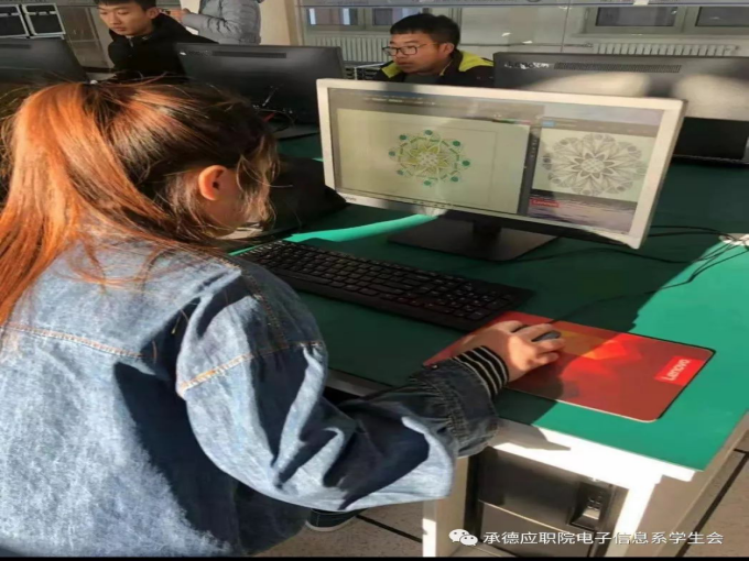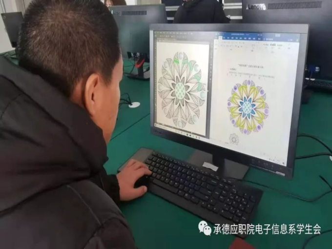 在微机室内,同学们发挥头脑,尽力的描绘出心中所想的完美图案将其绽放在计算机内。