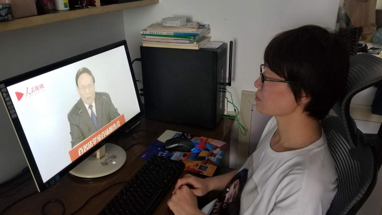 2020年7月29日,根据市教育局转发市法学会《关于组织2020年“双百”活动中央和国家机关专场报告会分会场的函》(会函字〔2020〕1号)文件要求以及学院工作安排,组织电子与通信工程系全体人员于7月29日(星期三)下午15:00—16:30登录人民网,观看由中国法学会党组成员、学术委员会主任张文显主讲的宣传贯彻《中华人民共和国民法典》的报告会。全系教师认真观看视频,并做好学习记录。