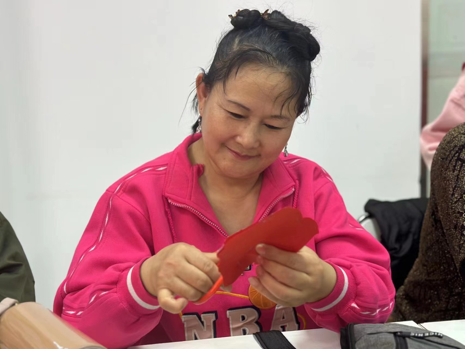居民王阿姨开心地说:"剪纸是我们中国的一种文化,以前忙着工作,很少静下心来专注于个人兴趣,今天参加社区的剪纸培训,圆了我年轻时的爱好,我要学会剪'春'字的方法,在生活中影响家人和朋友去发扬我们中国的文化。”