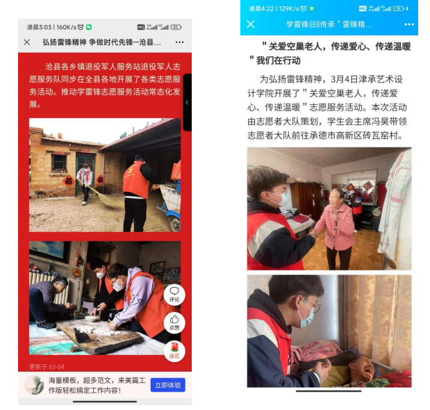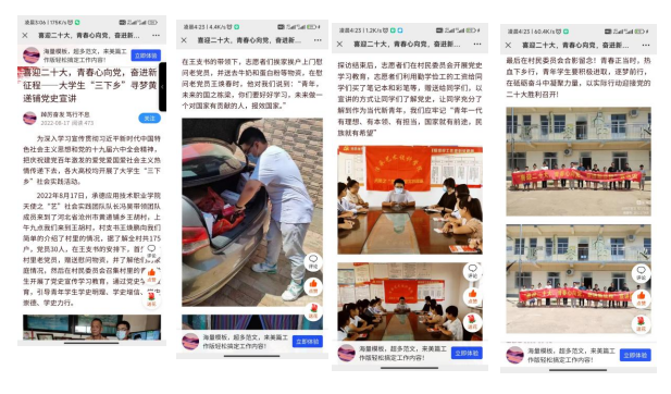 秉承敬老、爱老、助老的中华传统美德,积极投身敬老爱老的志愿活动,多次带领社会实践团队进行社会实践活动,如采访参加过抗美援朝战争的“最可爱的人”徐润生爷爷、慰问农村贫困户、看望老党员、帮助偏远地区孤寡老人家庭送去新年祝福等志愿活动,通过自己的努力,不断的志愿服务,志愿事迹被当地政府通过美篇的形式进行了报导,这更加激励着我,要不断投身于志愿服务,带动更多的人参与进来。
