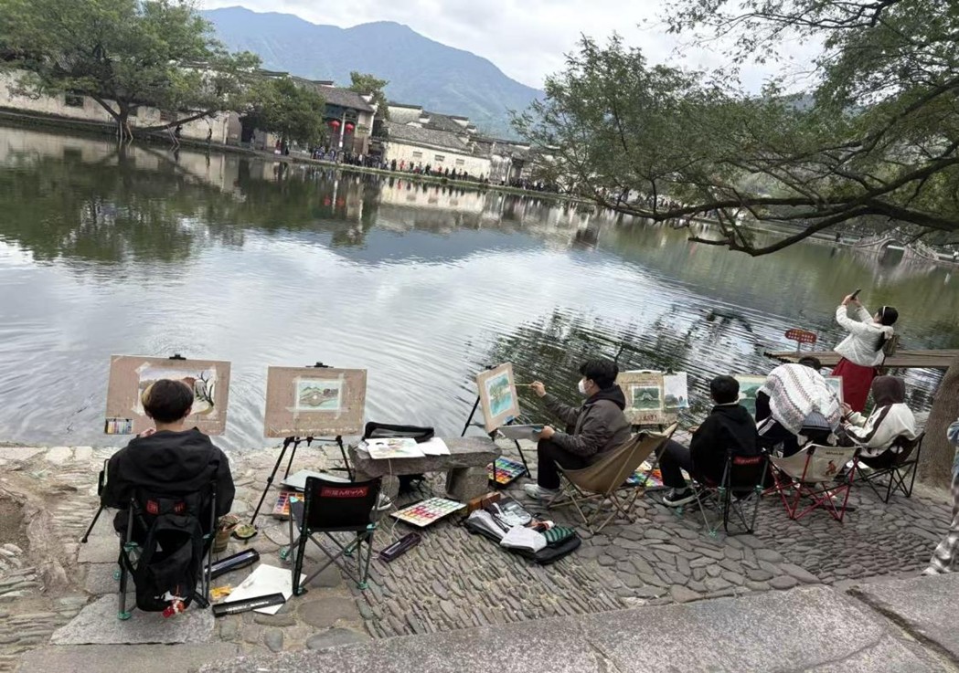 师生们深入安徽宏村、西递等文化底蕴深厚的古村落,以画笔捕捉徽派建筑的黛瓦白墙、山水田园的灵秀意境。同学们白天实地取景、现场创作,夜晚围绕构图、色彩等主题展开小组研讨,在沉浸式体验中提升了观察力与艺术表现力。