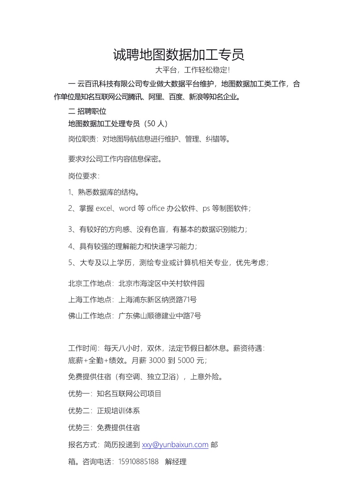 云百讯2020招聘简章