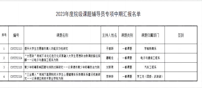 2023年12月28日,科研中心组织2023年度院级思政课题、教育科学规划课题以及院级课题辅导员专项中期汇报会。汇报会由科研中心主任黄丽丽主持。出席本次汇报会的评审专家有科研中心主任黄丽丽、河北石油职业技术大学魏战刚老师、汽车工程系主任张青松、督考办主任林丽萍。黄丽丽指出为了加强科研项目的过程性管理,推动教师按时、高质量完成课题研究,召开本次中期汇报会。