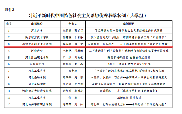 本次征集评选活动于2024年7月初启动。在学院党委的大力支持和承德博物馆的积极协助下,马克思主义学院教师全员参与,精心设计,集体备课打磨,拍摄录制视频,提写上报材料,经过三个月的不解努力,取得了优异成绩。其中,4个作品入选实践教学精品课,1个作品入选习近平新时代中国特色社会主义思想精品视频课,1个作品入选习近平新时代中国特色社会主义思想优秀教学案例。