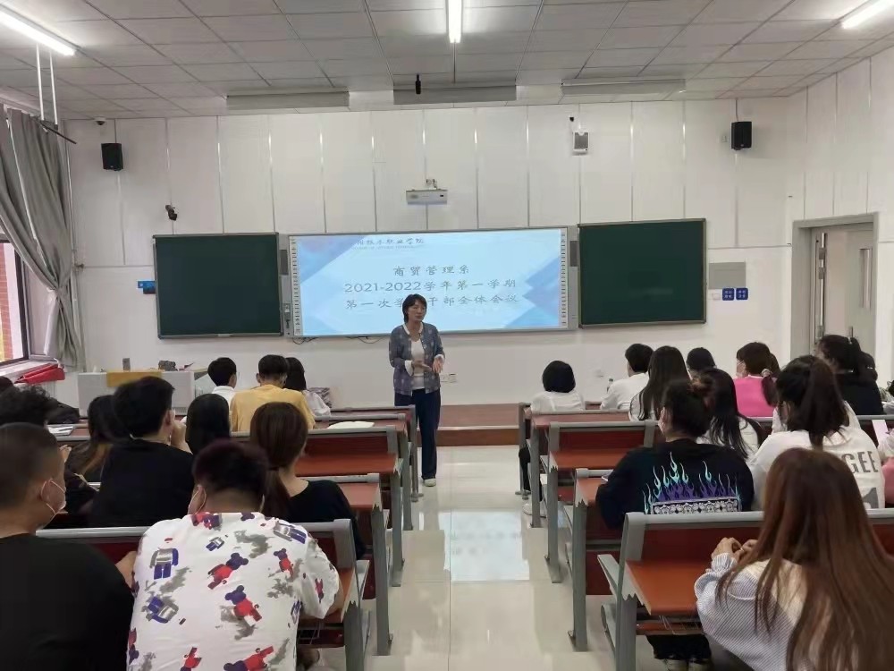 9月5号下午,商贸管理系在五号楼303教室召开全体学生干部大会,本次参会人员有学管主任霍楠、团总支书记李玲玲、学管干事王英松,以及全体学生干部。