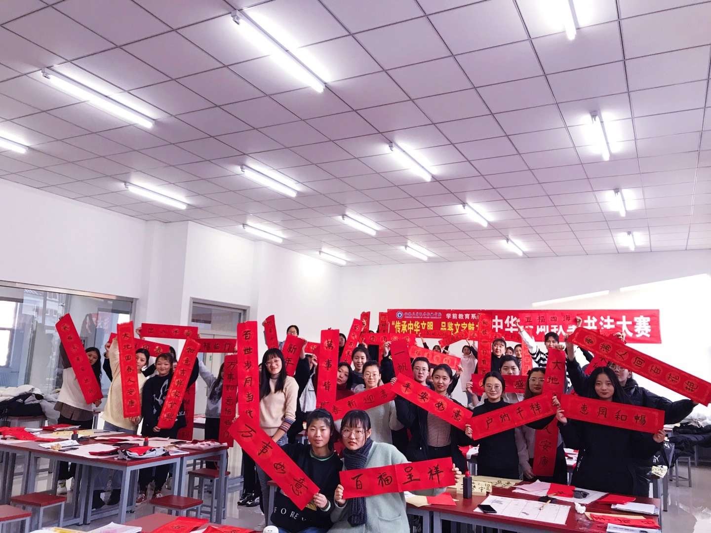 翰墨课堂是Beat365中文官方网站学前教育系的特色课程,课程开设的目的在于培养学生良好的书写习惯和踏实认真的学习态度,进一步提高其文化素质和审美素养。通过临摹学习,结合现场示范,使学生掌握运笔和构字的基本技巧,同时了解章法布局的基本常识,并逐步向创作过渡。这不仅可以充实学生的校园生活,还能够提高其对中国传统艺术的认知,同时也为将来有意向继续进行书法学习的学生做好铺垫、打下基础。