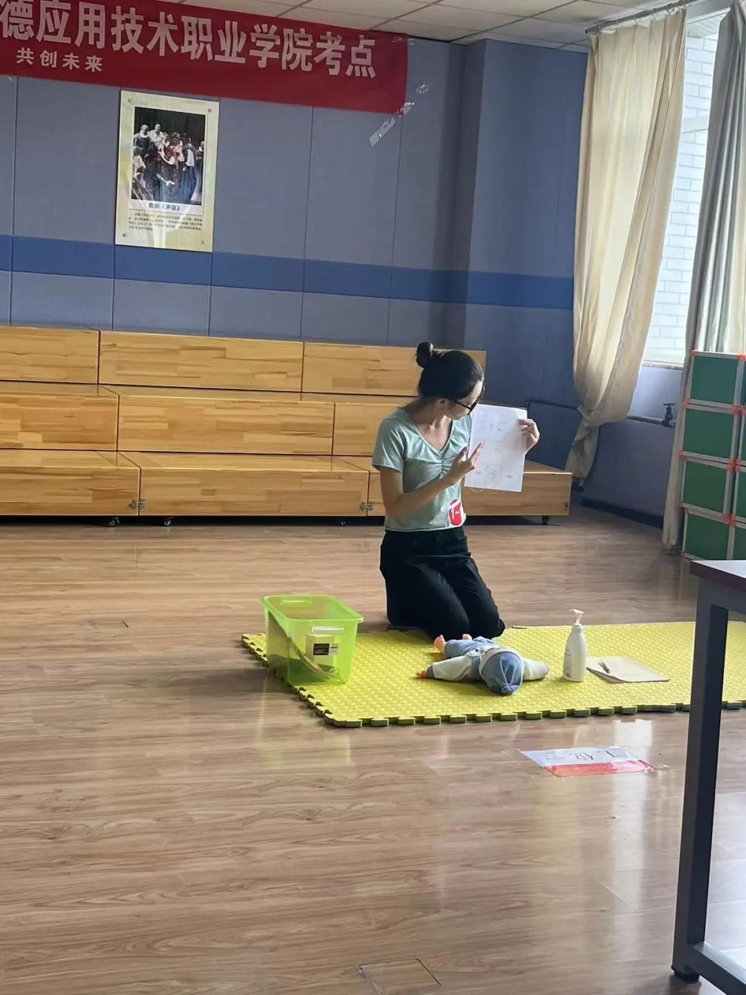 考试分为理论和实操两个部分,全面考察了学生在幼儿日常保健、安全防护、生活照料、科学急救护理等方面的幼儿照护能力。为确保考试工作顺利开展,学前教育系从证书宣传、学生选拔、考前培训、考务安排等方面积极做好各项准备工作。考前我系四名具备考评员资格的教师为118名学生进行专项辅导。
