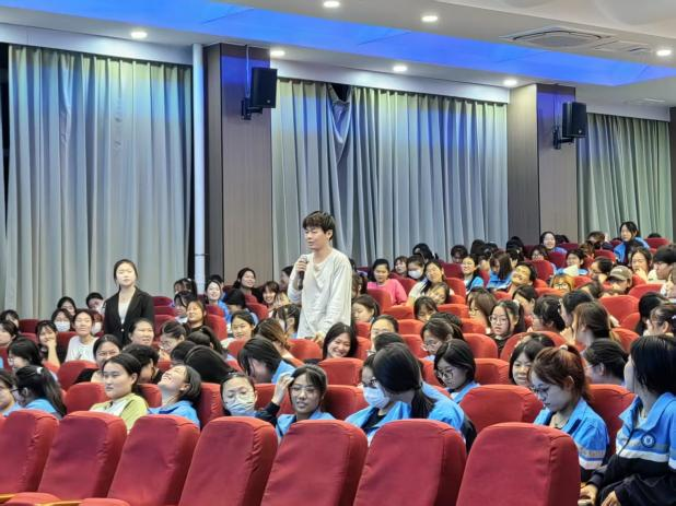 讲座中,祁老师引导同学回顾过往的经历,挖掘自身的三个优势,增强自我认同与自信心,同学们积极分享自己生活中的成功故事,现场氛围温馨融洽。情感问题环节,老师就“对喜欢的人怎么做”提出基于心理学原理的专业建议,讲解“拒绝自己不喜欢的追求者”的方法。老师耐心与同学们互动答疑,帮助同学们解决实际困惑,同时引入爱情三要素理论并结合案例分析,引导同学们剖析现实爱情,理性看待、妥善经营感情。