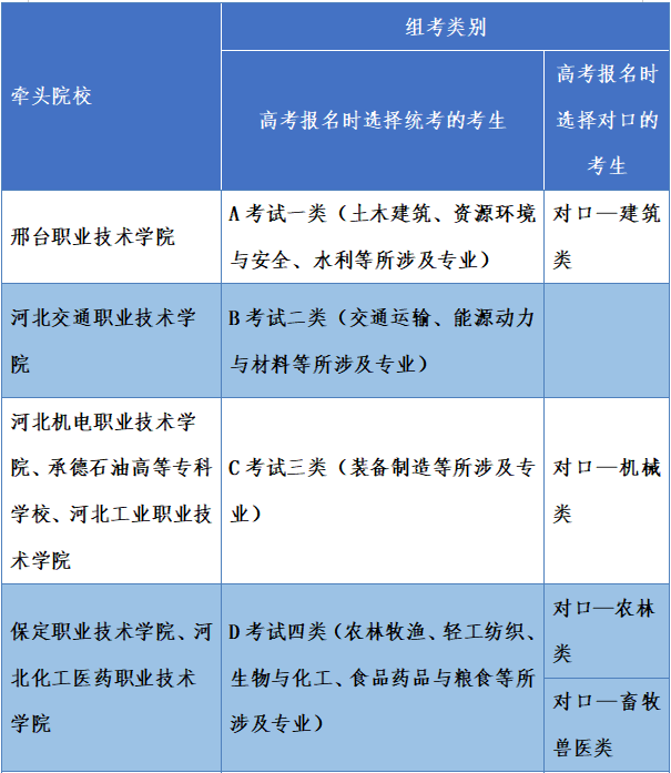 最新消息!2021年我省高职单招考试招生专业划分为不同的考试类,实行院校联合考试招生。邢台职业技术学院等17所院校被推选为各考试类牵头院校↓↓↓