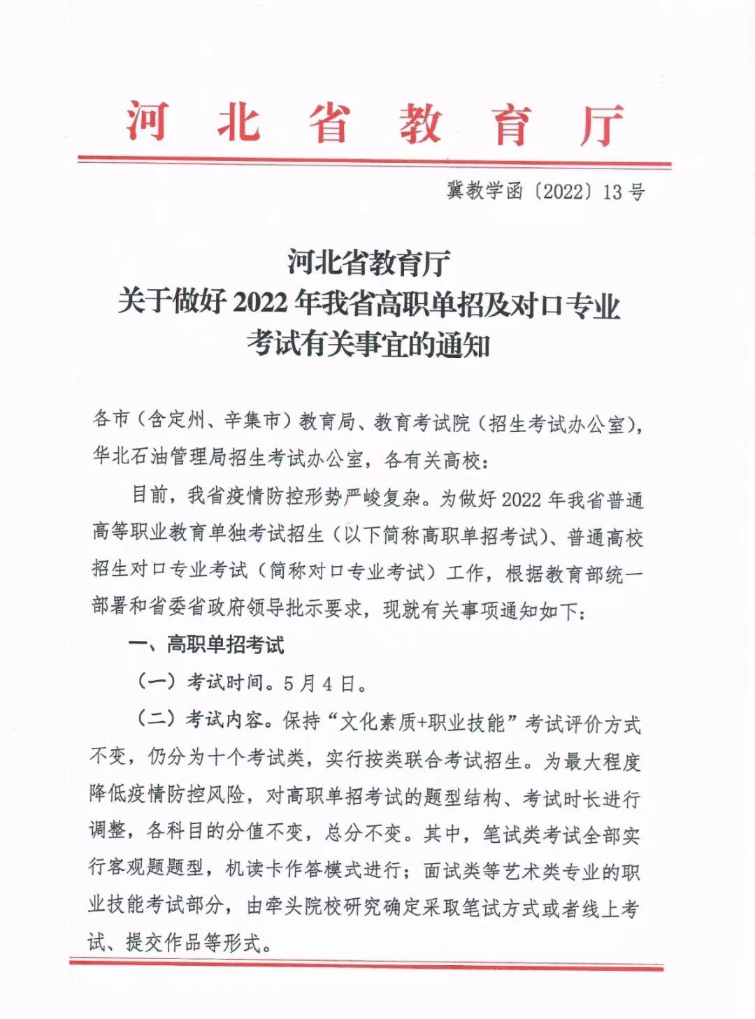 关于做好2022年我省高职单招及对口专业考试有关事宜的通知